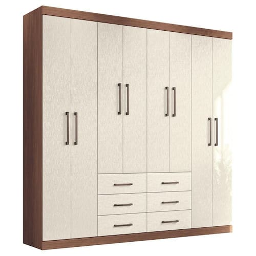 Feito em MDP, contém seis gavetas com corrediças telescópicas garantindo um deslizamento suave e silencisoso, possui onze prateleiras amplas e espaçosas podem ser utilizadas para guardar edredons, cobertores, caixas e sapatos.