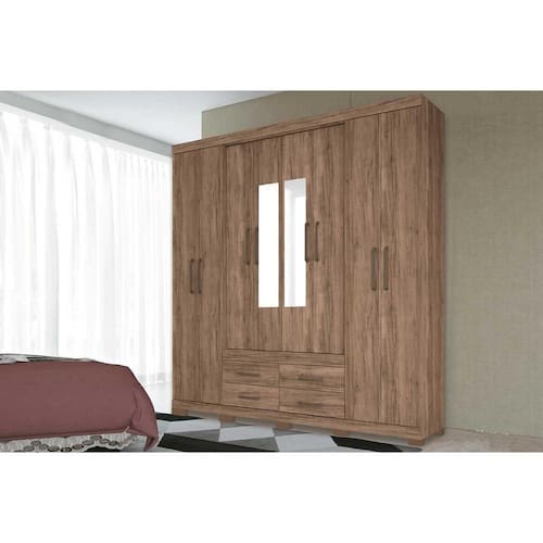 Guarda Roupa Casal 8 Portas e 4 Gavetas c/ Espelho e Pés Nápoles Atacama - Santos Andirá
