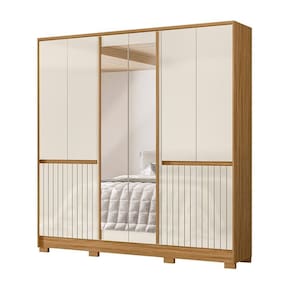 Guarda roupa Alasca com 4 gavetas com corrediças telescópicas, portas centrais com puxadores em MDF, espelhos nas portas centrais, detalhes frisados nas portas inferiores e pés em PCV que garantes estabilidade e estilo. Acabamento da Prateleira: Pintura UV Escala de Brilho da Prateleira: Semi-Fosco Acabamento da Gaveta: Pintura UV Escala de Brilho da Gaveta: Semi-Fosco Possui Organizador de Gaveta: Não Acabamento da Porta: Pintura UV Escala de Brilho da Porta: Semi-Fosco Material do Puxador da Porta: MDF Acabamento dos Pés: Pintura Altura do Espelho: 180 cm Altura dos Pés: 5 cm Altura Máxima dos Pés: 5.0000 Ambiente Principal: Quarto codigo_ean: 7900288093974 Complexidade da Montagem: Alta: deve ser montado por um montador especializado Cor: Freijó/Off White Cor do Produto: Freijo/Off White Cor do Puxador: Marrom Cor Flex: Não Cor Interna: Freijo Escala de Brilho: Semi-Fosco Espessura da Estrutura (mm): 15 mm Espessura das Portas (mm): 15 mm Espessura das Prateleiras (mm): 12 mm Espessura do Espelho: 3 mm Espessura do Fundo (mm): 3 mm Espessura do Fundo das Gavetas (mm): 3 mm Formato do Espelho: Retangular Gaveta com Chave: Não Itens Inclusos: 1 Guarda-Roupa, 1 Kit Ferragens, 1 Manual de Montagem Largura do Espelho: 30 cm Linha ou Coleção: Linha Crystal Manual de Montagem e Instalação: https://product-hub-prd.madeiramadeira.com.br/981847/documents/6fc2083e-fc83-4c25-9d95-2bfdb97c70b324961742387695981847150147.pdf Marca: Moval Material da Gaveta: MDP Material da Porta: MDP Material da Prateleira: MDP Material dos Pés: PVC Material Principal: MDP modular: Não Montagem Flex: Não Necessita Montagem: Sim Nicho com Cabideiro: Não Origem do Produto: Nacional Peso: 151,65 kg Peso Máximo por Gaveta: 5 kg Peso Máximo por Prateleira: 5 kg Porta Janelada: Não Possui Calceiros: 01 Possui Capelinha: Não Possui Espaço para Vestidos Longos: Sim Possui Espelho: Sim Possui Espelho Interno: Não Possui Ganchos: Não Possui iluminação: Não Possui Nichos: Não Possui Painel de TV: Não Possui Penteadeira: Não Possui Pés: 08 Possui Portas: Sim Possui Prateleiras: Sim Possui Sapateira: Não Produto Montado: Sim Quantidade de Cabideiros: 02 Cabideiros Quantidade de Espelho: 02 Espelhos com Tamanhos Iguais Quantidade de Gavetas: 04 Gavetas Quantidade de Portas com Espelhos: 2 Portas com Espelho Quantidade de Prateleiras: 12 Prateleiras Recomendações de Uso, Manutenção e Limpeza: Use uma flanela seca ou umedecida e não usar produto quimico que pode danificar seu móvel Sapatas Niveladoras: Não Sistema de Montagem: Parafusos, cavilhas e minifix Tipo de Corrediça da Gaveta: Metálica Telescópica Tipo de Dobradiça/Corrediça da Porta: Metálica Tipo de Fixação do Espelho: Silicone Tipo de Gaveta: Interna Tipo de Guarda-Roupa: Casal Tipo de Puxador da Gaveta: Não Possui Tipo de Puxador da Porta: Embutido