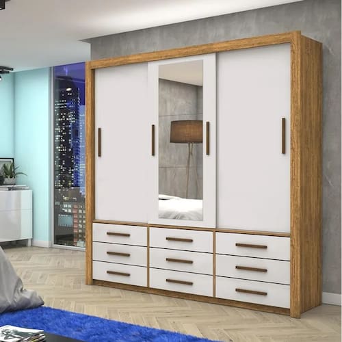 Guarda-Roupa Casal com Espelho 3 Portas de Correr Anjos