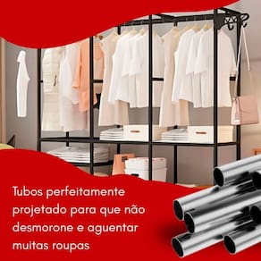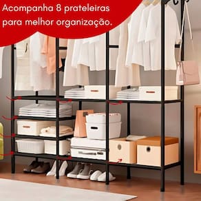 - Oferece amplo espaço para pendurar roupas, armazenar sapatos, bolsas e acessórios, mantendo seu espaço sempre arrumado sem comprometer o estilo.