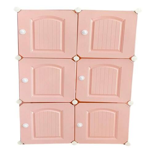 Guarda Roupa Armario Cabideiro 6 Portas Arara Organizador Portatil Modular Rosa Luxo