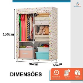 O armário dobrável é ideal para quem precisa de funcionalidade, unindo o útil e prático é a melhor opção para manter seus pertences organizados. Projetado em tecido de alta qualidade garante facilidade na hora de limpar. Possui duas divisões verticais em grandes espaços com cabideiro, 5 prateleiras e cortina de puxar com fechamento de tiras aderentes, suportando até 50kg. Sua montagem é simples e pode ser utilizado em qualquer ambiente. - possui duas divisões verticais; - grandes espaços para pendurar roupas com suporte de cabides; - 5 prateleiras espaçosas; - seu acabamento possui cortina com sistema de abrir e fechar de tiras aderentes. - sua estrutura é resistente composta de metal e tecido respirável de excelente qualidade; - tecido de fácil remoção pode ser lavado sempre que necessário. Características técnicas: material: metal e tecido tnt material conector: pp medidas montado: 156cm altura x 45cm largura x 96cm comprimento medidas da caixa: 9cm altura x 30cm largura x 54cm comprimento estilo de porta: puxar cortina quantidade de prateleiras: 5 prateleiras abertura e fechamento: tiras aderentes peso máximo suportado: 50 kg marca: staremcasa ref. : 1410466