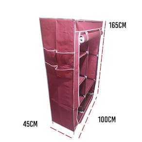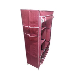 Armário prático de tecido dobravel com duas divisões, com seis prateleiras, dois bolsos laterais para sapatos e um ccabideiros, possuiu corttina de rolo com fecho de ambos os lados, facil de limpar e montar, uma otima opção para otimizar seus espaços.