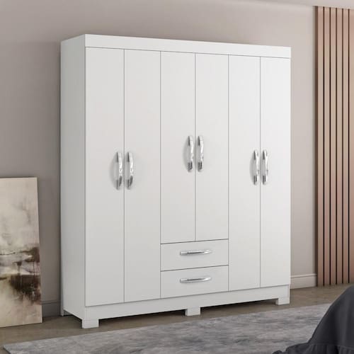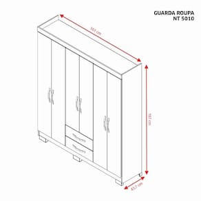 Com medidas compactas e uma ótima distribuição interna, o Guarda-roupa NT 5130 permite deixar tudo no seu devido lugar e de maneira muito prática. Com 4 prateleiras e 1 amplo cabideiro, ele possui um ótimo espaço interno para organizar roupas, calçados e cobertas! Possui também 2 gavetas com corrediças metálicas para guardar objetos menores.