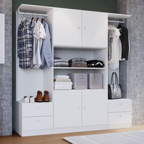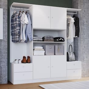 Conheça o Guarda Roupas Closet Casal 4 Portas e 4 Gavetas na cor Branca fabricado pela Art in Móveis, perfeito para facilitar a organização do espaço no dormitório, aproveitando cada detalhe. O Guarda Roupas foi desenvolvido para proporcionar maior conforto, funcionalidade e segurança, produzido com matérias primas atóxicas ecologicamente corretas, painéis de 15 mm em MDP de madeira reflorestada.