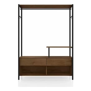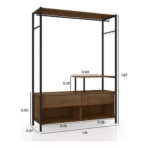 Transforme seu ambiente com este closet aberto que une design industrial e funcionalidade. A estrutura metálica preta garante resistência e modernidade, enquanto o acabamento em madeira demolição traz aconchego e sofisticação. Ideal para quem busca organização sem perder o estilo.