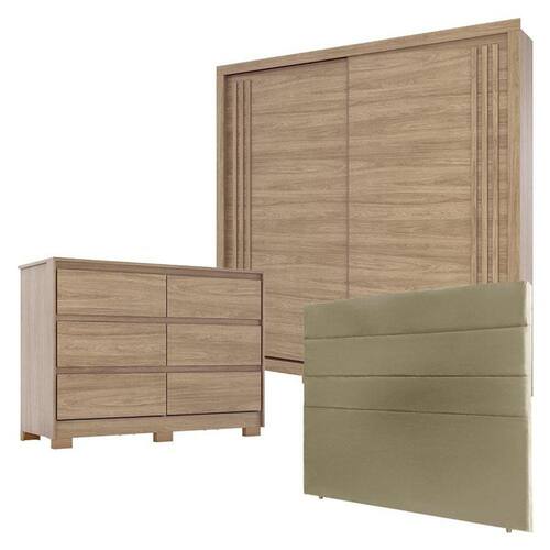 Guarda Roupa Aston com Cômoda Ravenna e Cabeceira Bia 195 cm Suede Taupe – Henn
