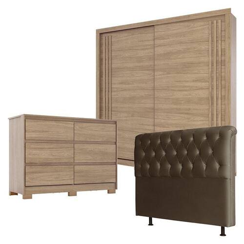 Guarda Roupa Aston Cômoda Ravenna Jequitibá Cabeceira Emilia 195 cm Suede Marrom - Henn