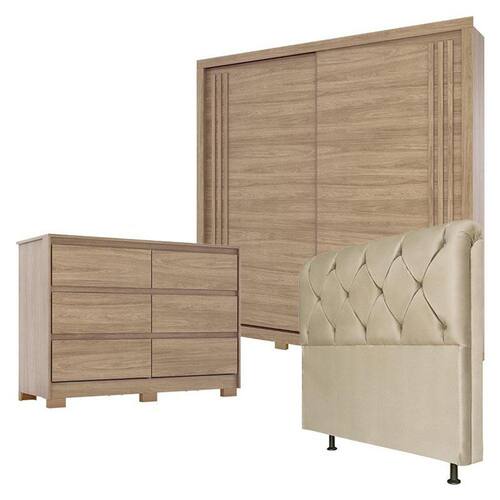 Guarda Roupa Aston e Cômoda Ravenna Jequitibá Cabeceira Daiana 140 cm Taupe Suede - Henn