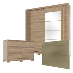 Guarda Roupa Aston Espelho com Cômoda Ravenna e Cabeceira Bia 160 cm Suede Taupe – Henn