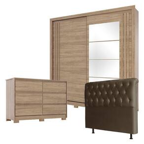 Guarda Roupa Aston Espelho Cômoda Ravenna Jequitibá Cabeceira Emilia 160 cm Marrom - Henn