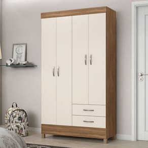 O(a) Guarda-Roupa Astro 4 Portas Amêndola/Off-White - Demóbile é produzido em MDP na escala de brilho Brilho e Fosca com Textura, e possui um grau de dificuldade de montagem: Médio.