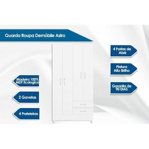 Guarda Roupa Astro 4.2 + Cômoda Astral Branco - Demóbile