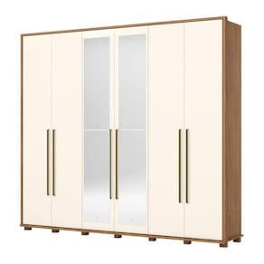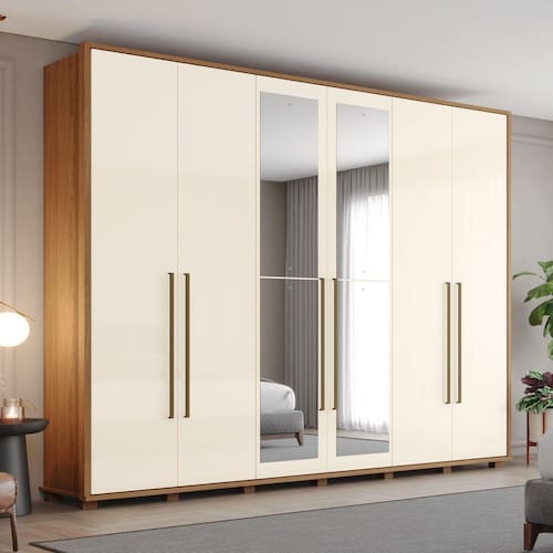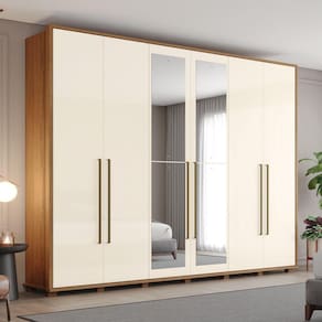 Se o que você procura é um guarda-roupa casal com muito espaço para organizar as roupas e tudo mais que um roupeiro comporta, o Atalaia é ideal para atender essas necessidades. São 06 gavetas usinadas com detalhes em vidro, que trazem charme e sofisticação ao roupeiro. Além disso, as gavetas com corrediças telescópicas garantem a abertura suave e total e o melhor aproveitamento do espaço. As divisórias no formato colmeia facilitam a arrumação das peças e objetos diversos. As dobradiças de 35 mm com amortecimento asseguram o fechamento suave das portas. O visual sofisticado e elegante do guarda-roupa Atalaia fica por conta da moldura lateral e superior de 25 mm envelopadas. A qualidade e a beleza também estão presentes nos cabideiros em alumínio e nos puxadores em alumínio com acabamento na cor bronze. Diferenciais; Cabideiros em alumínio Dobradiças de 35 mm com amortecimento Espelho Opcional Gavetas com corrediças telescópicas Maleiro Interno Prateleiras com divisórias em colmeia Puxadores em alumínio na cor bronze Medidas: A: 2400 x L: 2670 x P: 555 mm Grantia: 90 dias. Recomendação de limpeza: Usa pano levemente umedecido com água, seguido por pano seco. Evitar exposição ao sol, para aumentar a durabilidade da cor do tecido. Não usar escova e/ou produtos abrasivos. Montagem: Montagem, desmontagem e outras instalações serão de responsabilidade do cliente. Não nos responsabilizamos, no ato da entrega, por subir escadas/elevadores ou pelo transporte por guincho em apartamentos. Eventuais despesas são de responsabilidade do comprador; Observações importantes: A tonalidade da cor do produto pode variar de acordo com a sua tela, a iluminação do ambiente ou sua percepção visual Lembrando que são fotos ilustrativas tratadas em estúdios podendo haver pequena diferença nas cores A montagem será de responsabilidade do comprador; Não nos responsabilizamos, no ato da entrega, por subir escadas/elevadores ou transporte por guincho em apartamentos. Eventuais despesas são de responsabilidade do comprador; Confira as dimensões deste produto e certifique-se de que passará normalmente por supostos elevadores, portas, escadas e/ou corredores de sua residência; Para mais informações, acesse nossa Central de Atendimento. Marca: LM DECOR