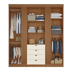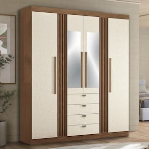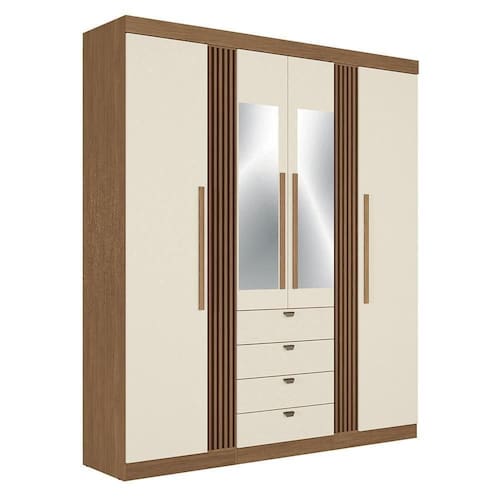 Guarda Roupa Aurora Ripado 4 Portas e 4 Gavetas com Espelho - Santos Andirá