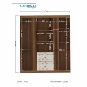 Guarda Roupa Aurora Ripado 4 Portas E 4 Gavetas Jatobá/areia Com Espelho - Santos Andirá Jatobá/areia