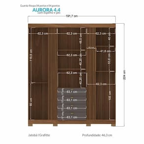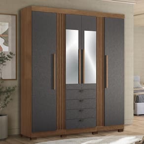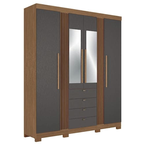 Guarda Roupa Aurora Ripado 4 Portas E 4 Gavetas Jatobá/grafite Com Espelho E Pés - Santos Andirá Jatobá/grafite