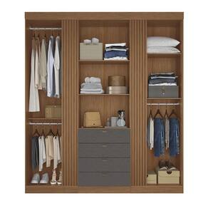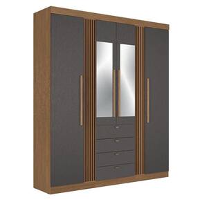 Guarda Roupa Aurora Ripado 4 Portas E 4 Gavetas Jatobá-grafite Com Espelho - Santos Andirá Jatobá-grafite - Cinza