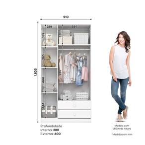 O(a) Roupeiro Bala de Menta 3 Portas Branco e Branco/Rosa Chá é produzido em Caixa: MDP 12mm