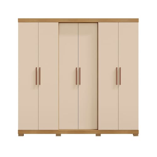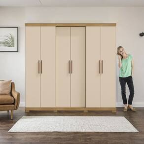 Fabricado 100% em MDP, o Barcelos oferece estrutura sólida e durável, com acabamento em pintura UV de brilho fosco que protege e valoriza ainda mais o móvel. Com impressionantes 2,34 metros de largura e 2,40 metros de altura, este guarda-roupa acomoda com facilidade roupas, acessórios e calçados, otimizando a organização no dia a dia.