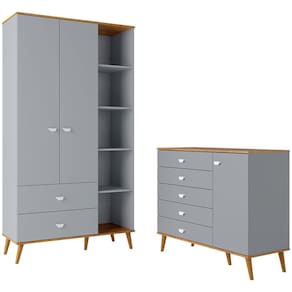 Além disso, o armário Ternura possui 3 prateleiras internas, sendo uma móvel e duas fixas e nichos adicionais de 5 compartimentos, além de suporte de cabides em alumínio. Essa combinação permite uma organização eficiente de roupas dobradas e penduradas, maximizando o espaço interno do armário. Os pés plásticos garantem estabilidade e segurança, enquanto os puxadores plásticos acrescentam um toque moderno ao design do armário.