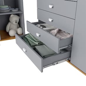 Com suas 5 gavetas espaçosas, esse móvel é projetado para áreas infantis e proporciona um amplo espaço de armazenamento para suas roupas, acessórios e objetos pessoais, mantendo tudo organizado e ao alcance das mãos. Além disso, as corrediças telescópicas permitem um deslizamento suave e silencioso, facilitando o acesso aos itens guardados.