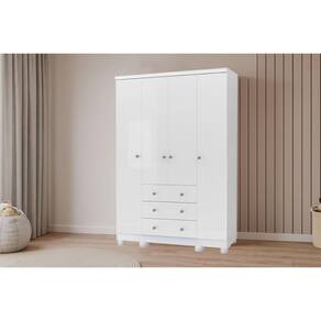 Guarda Roupa Bebê c/ 4 Portas e 3 Gavetas Júnior Branco - Peroba