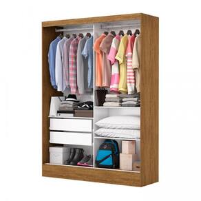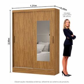 Com Puxador em Madeira, possui 3 prateleiras interna, 2 portas correr, 2 gavetas internas com corrediças metálicas além de amplo espaço para os cabideiros.