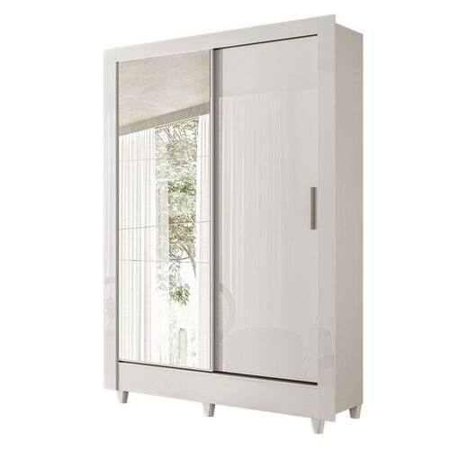 Guarda Roupa Belgica 2 portas de Correr com Espelho Branco Brilho - Santos Andirá
