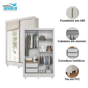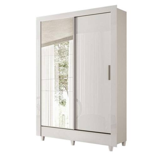 Guarda Roupa Belgica 2 portas de Correr com Espelho Branco Brilho - Santos Andirá