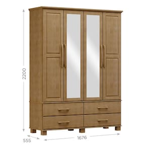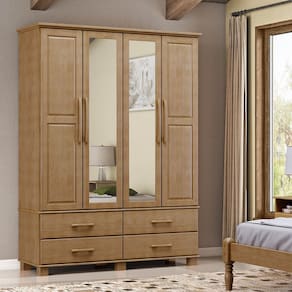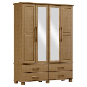 Guarda-Roupa Bipartido 4 Portas 4 Gavetas Ouro Freijó Madeira Pinus - Finestra - Transparente