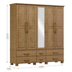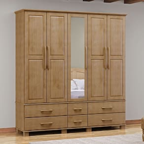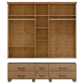 Guarda-Roupa Bipartido 5 Portas 6 Gavetas Ouro Freijó Madeira Pinus - Finestra