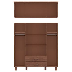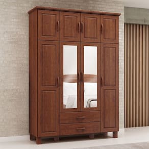 Características: Estrutura 100% em Madeira Maciça Pintura Acetinada Verniz PU e UV Amplo Espaço para Armazenamento Montagem Bipartida 02 Gavetas com Corrediças Metálicas 08 Portas com Dobradiças Metálicas Cabideiros em Alumínio (Peso Máximo Suportado 08kg Distribuídos); Peso Máximo Suportado pelas Gavetas 05kg Distribuídos Peso Máximo Suportado pelas Prateleiras 08kg Distribuídos