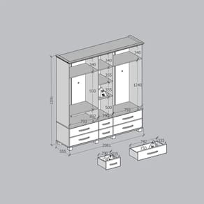 CONTEÚDO DA EMBALAGEM:<Br> 1 Guarda Roupa<Br> 1 Espelho<Br> 1 Kit Ferragens<Br> 1 Manual de Montagem<Br><Br>