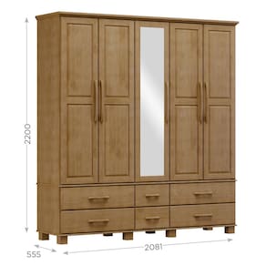 ESPECIFICAÇÕES TÉCNICAS:<Br> Produto 100% Madeira Maciça de pinus de reflorestamento;<Br> Pintura Acetinada Verniz PU e UV;<Br> Corrediças telescópicas;<Br> Dobradiças com amortecimento;<Br> Cabideiro em alumínio;<Br> Puxadores e Pés em madeira maciça;<Br> Peso máximo suportado pelas Gavetas 05kg distribuídos;<Br> Peso máximo suportado pelas Prateleiras 10kg distribuídos;<Br> Peso máximo suportado pelo Cabideiro 08kg distribuídos;<Br> Portas centrais possuem espelho;<Br> Amplo espaço para armazenamento;<Br> Isolamento de peças com manta de polietileno expandido (Isomanta);<Br> Possui manual de montagem;<Br> Sistema de montagem simples e rápida.<Br><Br>