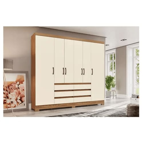 Guarda Roupa Casal B355 Nature Off White Henn – Briz Móveis Sempre em busca das principais tendências e do melhor preço, fechamos parceria com a Briz e Henn para apresentar um lindo modelo de Guarda Roupa para proporcionar modernidade, praticidade e organização no seu quarto. O Guarda Roupa Casal B355 foi desenvolvido em MDP e MDF, possui amplo espaço interno com gavetas, prateleiras e cabideiro, e também possui design super sofisticado, não perca mais tempo e aproveite!