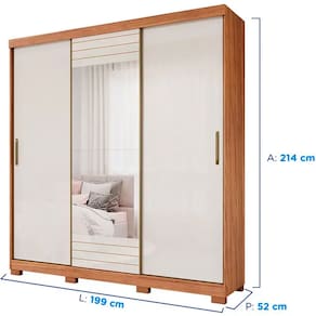 Características: Marca: Panan Modelo: Búzios Tipo: Roupeiro Tipo de porta: Correr Quantidade de portas: 3 portas Quantidade de gavetas: 4 Gavetas Quantidade de cabideiros: 2 Sapateira: Não Espelho: Sim Gaveta com chave: Não Material do trilho: Alumínio Bronze Tipo de corrediças: Telescópicas Material da estrutura: MDF Material das portas: MDF Material das gavetas: MDF Material dos puxadores: Alumínio Bronze Pés: Sim Material dos pés: ABS Acabamento: Pintura UV Sistema de montagem: Minefix, parafusos e cavilhas