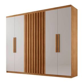 Guarda Roupa Cairo 6 Portas Com Pés Rufato Naturale/off Wh O Guarda Roupas Cairo da Rufato oferece otima divisao interna, ocupando pouco espaco em seu ambiente e proporcionando maior funcionalidade. Roupeiro 100 em MDF o que garante um vida util maior ao seu movel. Ele possui puxadores em MDF, maior seguranca e durabilidade, cabideiros e calceiro em aluminio, 2 gavetas com corredicas telescopicas, deslize mais suave, 6 portas, sendo duas com o detalhe ripado, elevando o ambiente com seu design exclusivo, dobradicas de metal robustas, nichos internos, mantendo tudo organizado e ao alcance das maos, funcional e perfeito para o seu espaco.