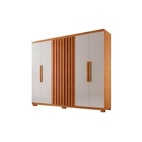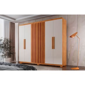 Roupeiro 100 em MDF o que garante um vida útil maior ao seu móvel. Ele possui puxadores em MDF, maior segurança e durabilidade, cabideiros e calceiro em alumínio, 2 gavetas com corrediças telescópicas, deslize mais suave, 6 portas, sendo duas com o detalhe ripado, elevando o ambiente com seu design exclusivo, dobradiças de metal robustas, nichos internos, mantendo tudo organizado e ao alcance das mãos, funcional e perfeito para o seu espaço.