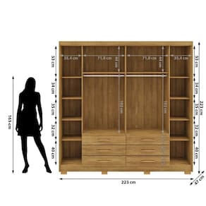 O guarda-roupa Casal Canadá é a escolha ideal para quem busca elegância e funcionalidade em um único móvel. Com suas 6 portas e 6 gavetas, ele oferece amplo espaço para organizar roupas e acessórios de forma prática. A frente é confeccionada com espessura de 15 mm, enquanto o corpo, com 12 mm, proporciona equilíbrio entre robustez e leveza. As gavetas contam com corrediças metálicas, garantindo suavidade ao abrir e fechar, e os puxadores em plástico são discretos e modernos. O cabideiro de alumínio completa o design, oferecendo resistência para suportar as peças penduradas, tornando o Canadá um item indispensável para qualquer quarto.