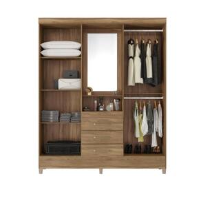 Esse guarda roupa se destaca pela usabilidade, oferecendo várias prateleiras em seu interior, além do espelho com ótima dimensão no espaço central