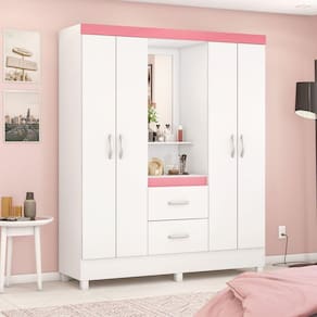 O Guarda Roupas Lord Possui acabamento em impressão de alta qualidade que garante maior resistência ao móvel além de um espelho central que vai dar aquele toque de requintado ao seu quarto. Gavetas externas com deslize perfeito e pés em PVC de série. Para garantir a qualidade do produto dentro da embalagem, as caixas são revestidas por um plástico termoencolhível e todas as peças são separadas por isomanta, tudo para preservar e evitar o atrito entre as peças dentro da embalagem. Você contará também com um manual com o passo a passo para auxiliar no momento da sua montagem." Acabamento da Prateleira: Pintura Escala de Brilho da Prateleira: Brilhante Possui Cabideiros: 02 Acabamento da Gaveta: Pintura Escala de Brilho da Gaveta: Brilhante Material do Puxador da Gaveta: PVC Possui Organizador de Gaveta: Não Acabamento da Porta: Pintura Escala de Brilho da Porta: Brilhante Material do Puxador da Porta: PVC Altura do Espelho: 81,4 cm Altura dos Pés: 5 cm Ambiente Principal: Quarto Complexidade da Montagem: Média: pode ser montado por mais de uma pessoa e/ou necessite de maior conhecimento para montagem Cor: Branco/Rosa Cor do Produto: Branco/Rosa Escala de Brilho: Brilhante Espessura do Espelho: 3 mm Fita Integrada: Não Formato do Espelho: Retangular Gaveta com Chave: Não Informações Complementares: FLEX Itens Inclusos: 1 Guarda Roupa, Kit Ferragens e Manual De Montagem. Largura do Espelho: 42,4 cm Linha ou Coleção: Manual de Especificação Técnica: https://cdn2.madeiramadeira.com.br/atributo/demobile-novo/934881-esquema-montagem-42220.pdf Manual de Montagem e Instalação: https://cdn2.madeiramadeira.com.br/atributo/demobile-novo/934873-esquema-montagem-42220.pdf Material da Gaveta: MDF Material da Porta: MDP Material da Prateleira: MDP Material dos Pés: Plástico Material Principal: MDP Necessita Montagem: Sim Origem do Produto: Nacional Peso: 67 Peso Máximo por Gaveta: 3 kg Peso Máximo por Prateleira: 4 kg Possui Calceiros: Não Possui Espelho: Sim Possui Pés: 06 Possui Portas: 04 Possui Prateleiras: 03 Quantidade de Espelho: 01 Recomendações de Uso, Manutenção e Limpeza: Flanela Seca. Resistente à Chuva: Sapatas Niveladoras: Não Sistema de Montagem: Parafusos e Cavilhas. Suporta Até (kg): 3 Tamanho: Tipo de Corrediça da Gaveta: Metálica Simples Tipo de Dobradiça/Corrediça da Porta: Metálica Tipo de Fixação do Espelho: Fita Dupla Face Tipo de Gaveta: Externa Tipo de Guarda-Roupa: Solteiro Tipo de Puxador da Gaveta: Externo Tipo de Puxador da Porta: Externo