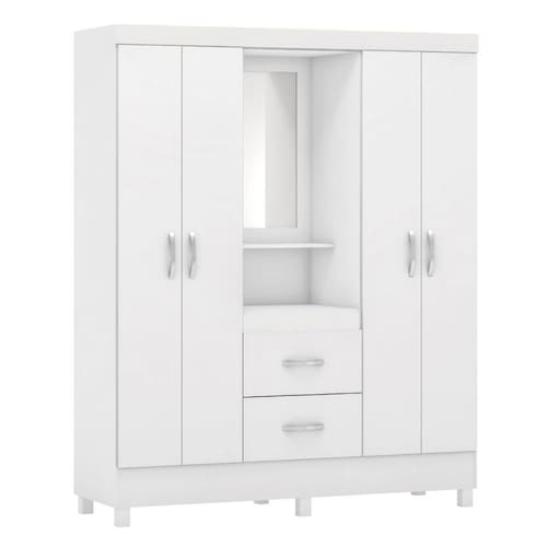 O Guarda-Roupa Capelinha 4 Portas Lord é a combinação perfeita de elegância e praticidade. Sua estrutura em MDP com pintura UV garante resistência e durabilidade, enquanto as dobradiças e corrediças metálicas proporcionam maior desempenho. Equipado com cabideiros metálicos, puxadores em plástico ABS e espelho, é ideal para quem busca funcionalidade e estilo. Seus pés em PVC oferecem estabilidade e o acabamento sofisticado se adapta a qualquer ambiente.