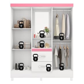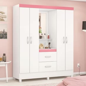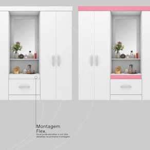o guarda roupa na cor branco e rosa, é Flex, ou seja, você escolhe a cor que deseja na hora de montar, seja a cômoda na cor branco ou branco com rosa. Confira o manual antes da montagem e informe seu montador (a).