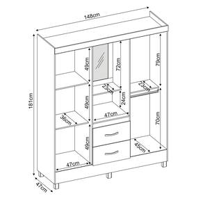 Produzido em MDP com acabamento em pintura UV, o móvel conta com cabideiro e calceiro metálicos, que auxiliam na organização das roupas. As gavetas possuem corrediças metálicas, garantindo melhor funcionamento na abertura e fechamento. O modelo também dispõe de espelho integrado, facilitando o uso diário.