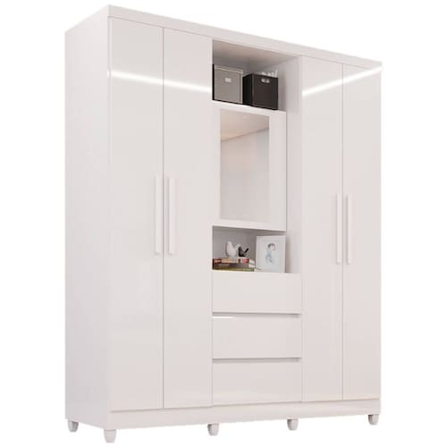 Guarda Roupa Capelinha Master Solteiro com Espelho 5 Portas 3 Gavetas Imop O Guarda Roupa Capelinha Master Solteiro com Espelho 5 Portas 3 Gavetas Imop é a combinação perfeita de elegância e praticidade. Conta com espaço próprio para roupas longas, evitando assim a necessidade de realizar dobras nas peças que possuem maior comprimento. Facilita a organização, pois contém grande quantidade de prateleiras e proporciona praticidade para o seu dia a dia. Versátil e prático, o modelo com certeza dá um chame ao ambiente. Conta ainda com nicho onde você pode colocar acessórios para facilitar o acesso. MEDIDAS Altura 216 cm Largura 165 cm Profundidade 42 cm CARACTERÍSTICAS Modelo Guarda Roupa Capelinha Master Tipo de Produto Guarda Roupa Solteiro Garantia 3 meses Fabricante Imop Ambiente Quarto Estrutura MDF/MDP Quantidade de Portas 05 Quantidade de Gavetas 03 Tipo de Porta Bater Material Puxadores Madeira Acabamento Pintura UV Tipo de Corrediça Telescópica Necessita Montagem Sim Acompanha Manual de Instalação Sim INFORMAÇÕES IMPORTANTES Objetos decorativos que porventura apareçam na foto, não acompanham o produto. Não nos responsabilizamos pela montagem/instalação dos produtos. Montagens, desmontagens e instalações são responsabilidades do cliente. Indicamos que contrate uma empresa de montagem ou um montador de sua confiança. Além disso, favor verificar se os pés e acessórios estão dentro do forro inferior do produto. Em suma, todas as informações divulgadas sobre o produto são de responsabilidade do Fabricante. As cores do produto podem variar de acordo com o seu monitor, a iluminação do ambiente em que você está e até mesmo a sua percepção visual. Além da cor, pequenos detalhes e acabamentos podem não ficar evidentes na foto, por isso as imagens são meramente ilustrativas