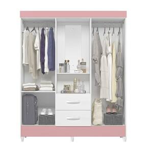 ESPECIFICAÇÕES: Estrutura em MDP Pintura UV 4 Portas Dobradiça metálica 2 Gavetas Corrediças metálicas Puxadores em ABS Cabideiro em madeira revestida Espelho central Modelo capelinha Pés em ABS