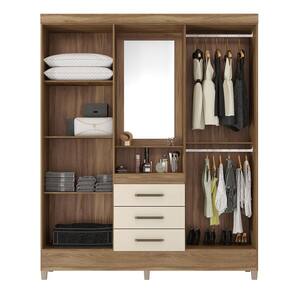 Se você está em busca de um guarda-roupa para manter seu quarto organizado, mas também gostaria que ele oferecesse praticidade e economia, o modelo Pérsia é uma ótima opção. Versátil, ele conta com nicho, prateleira e espelho na parte externa central, funcionando perfeitamente como penteadeira.