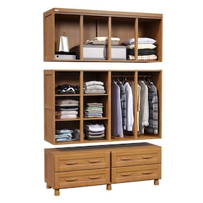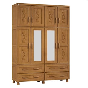 Guarda-Roupa Caribe com 8 Portas, Maleiro e 4 Gavetas em Madeira Pinus Carvalho Acetinado - Tozzeto